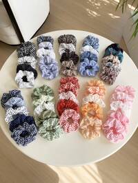 5pcs Women's 9cm/3.54in Polka Dot Plaid Navy Blue Floral Hair Scrunchies, Fashionable Versatile High-End Elegant Minimalist Solid Color Elastic Hair Ties, Suitable For Daily Outings, Casual, Party, Commute, Beach, Vacation, Ponytail, Bun, Washing Face, Makeup, Matching Outfits Hair Accessories Head Accessories Elastic Band #2 Bestseller