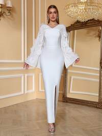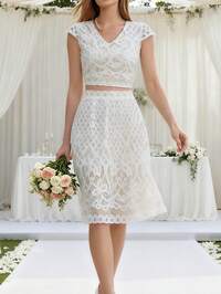 VowaVowa Elegant, Romantic, Fashionable, Sexy, White Color, Lace Fabric, Mesh Patchwork, Fishbone Fashion Single Party Dress, Wedding, Graduation Season, Vacation, Afternoon Tea Outfit, Bridal Gift Dress, Valentine's Day
