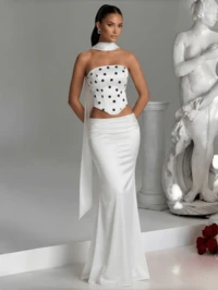 VowaVowa Elegant And Luxurious Craftsmanship With Ribbon Embroidery Two-Piece Suit, Off-Shoulder Double Straps, Swing Collar And Beautiful Back, Hip-Wrapped Half-Length Fishtail Skirt, Suitable For Coming-Of-Age Ceremony, Graduation Dance, Birthday, Party, Music Festival, Wedding And Other Formal Occasions, Party Dress, Net Sense Dress, Dress