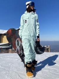 PinkTip&ZJ1pc Women's Solid Color Winter Outdoor One-Piece Ski Suit, Ideal Outdoor Ski Jumpsuit, Winter Women's Clothing, Taped Zipper Anti-Loss Design, Ski Suit Set With Zippered Pockets, Winter Sports Ski Suit, Sportswear, Suitable For Outdoor Activities, Winter Skiing Gear, Reinforced Structure, Functional Ski Equipment, Durable Snow Gear,Ski Clothes Women Ski Outfits