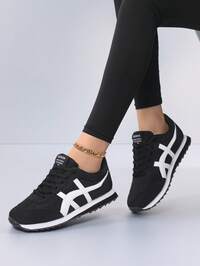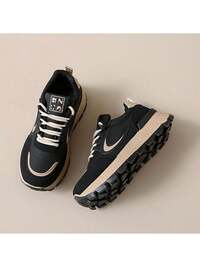 Retro Platform Sneakers, White Shoes, Contrast Color Design, Women's Black & White Vintage Classic Low-Top Sneakers - Iconic Stripes, Lightweight, Thick Rubber Sole, Comfortable Women's Shoes, Lace-Up Round Toe Casual Shoes, Synthetic Leather Upper, School Shoes, Suitable For Jeans, Dresses, Daily Wear, Running Shoes, Athletic Shoes, Women's Shoes, Ladies Shoes, Women's Sneakers, White Sneakers #8 Bestseller