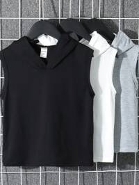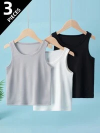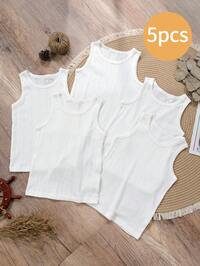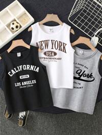PipplinSHEIN 4pcs/Set Boys Comfortable, Breathable, Cool And Sweat-Wicking Sleeveless Round Neck Knit Tank Tops, All-Match Casual Versatile Design, Suitable For Spring/Summer Daily, Sports, Outdoor, School, Party, Festival, Photography, Back To School