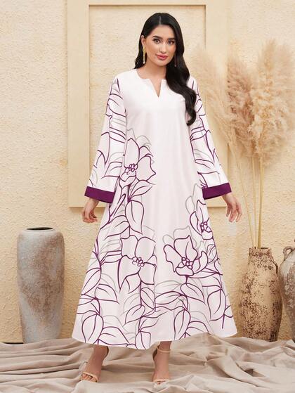 SHEIN Najma Elegant & Comfortable Fabric Button Decor Women Loose Dress Dress Modest Cotton Dress Plus Size Linen Dresses For Women Casual Long Dress Elderly Women Dresses Abayas