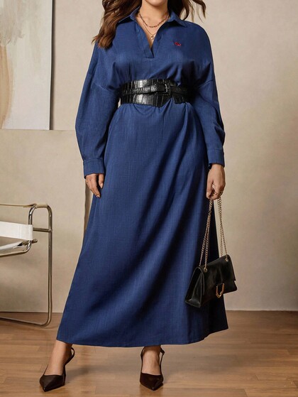 Modelyn Plus Size Polo Collar Textured Fabric Cinched Waist Cinched Waist Dress