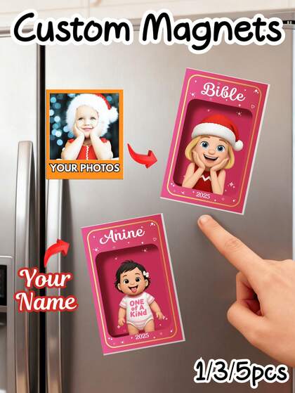 1/3/5pcs Customized Acrylic Refrigerator Magnets - Personalized Acrylic Fridge Magnets - Customizable Text & Cute Pattern Acrylic Fridge Magnets - Customizable Name & Photo Acrylic Fridge Magnets, Easy To Clean Acrylic Fridge Magnets - Reusable Personalized Customized Fridge Magnets, Valentine's Day Gift