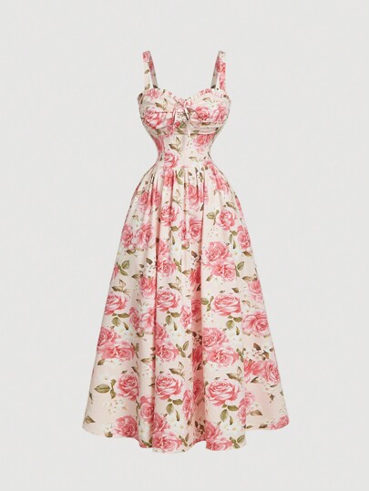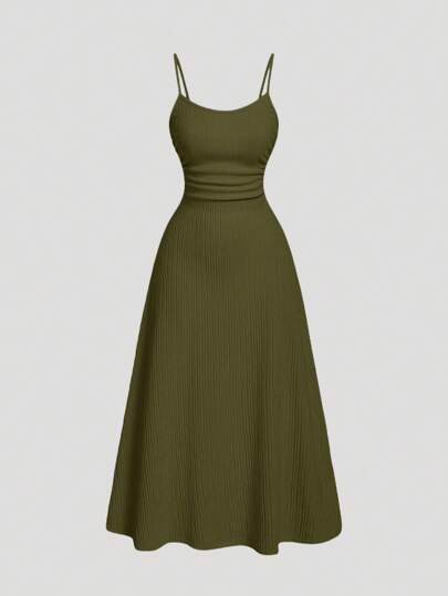 Spring And Summer Women's Casual And Fashionable Solid Color V-Neck Back Hollow Air-Quality Waist-Cinching Pleated Bat-Sleeve Elegant Long Large A-Hem Dress