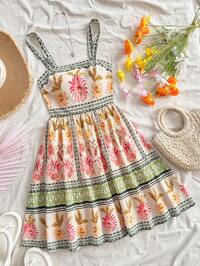 Soleia Dress For Women,Summer Dresses For Women,Western Wear Women,Boho,Floral Dress Women,Concert Outfit Women,Rave Outfits Festival,Cruise Attire Women,Birthday Dresses For Women,Easter Dress Women,Vacation Women Colorful Tropical Floral Placement Print Cinched Waist A-Line Mini Dress, For Spring,Sun Dress #2 Bestseller